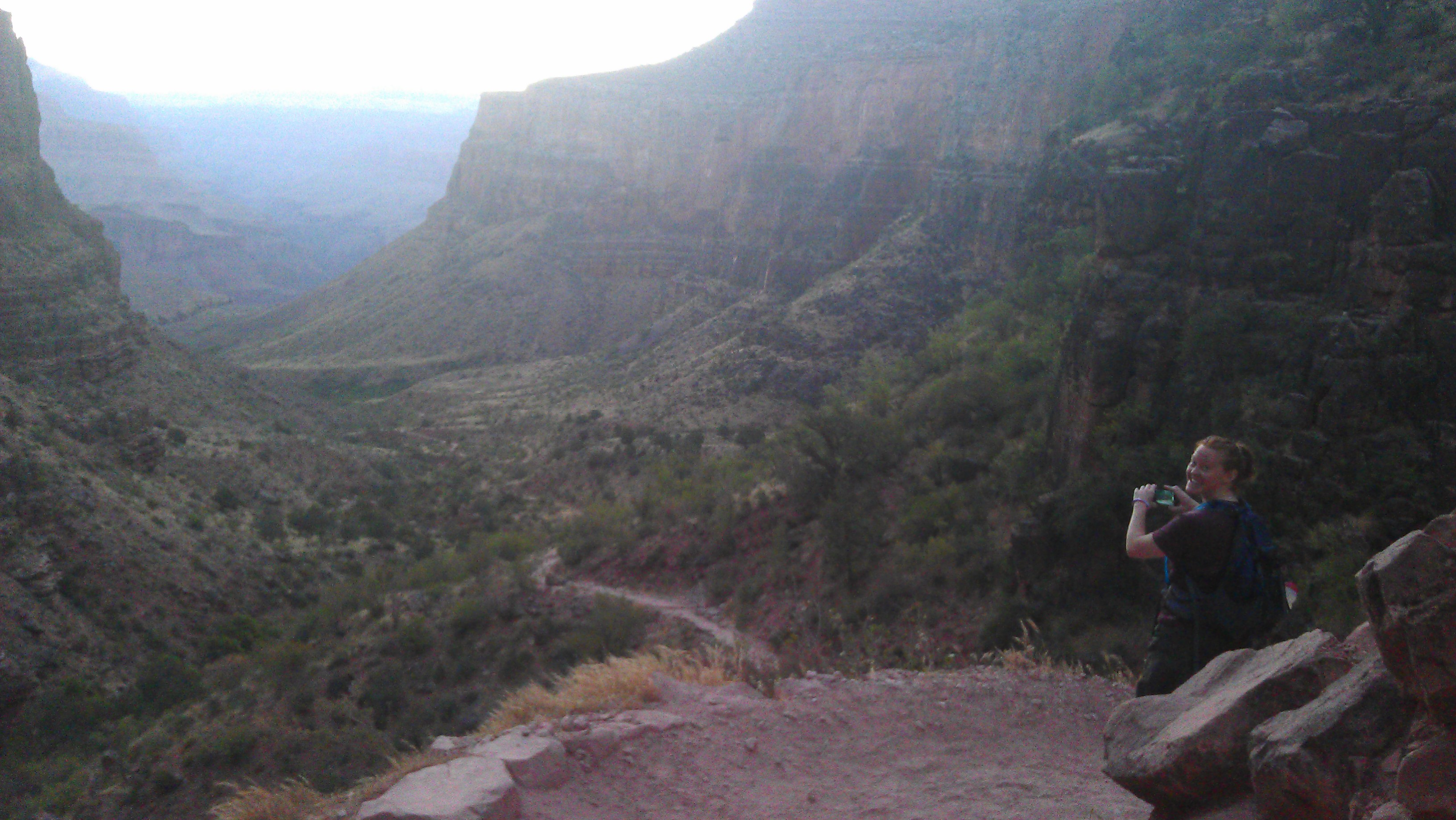 After my alarm sounded at 3:30, I received a call from Christie – she had made it less than a mile down the trail before being “cornered” by an unidentified cat. Amanda to the rescue! After an uneventful reuniting with Christie, we decided to stick together while it was still dark out. After a couple more miles of dodging mule poop by headlamps, Christie and I turned a corner when I heard a rustle near us in the bushes on the trail. My instinct came in and I yelled loudly (like encore-loud) towards the noise: “HEY YOU!!” I immediately realize that I had just yelled at a middle-aged woman. Perfect. At least I have keen cougar senses.